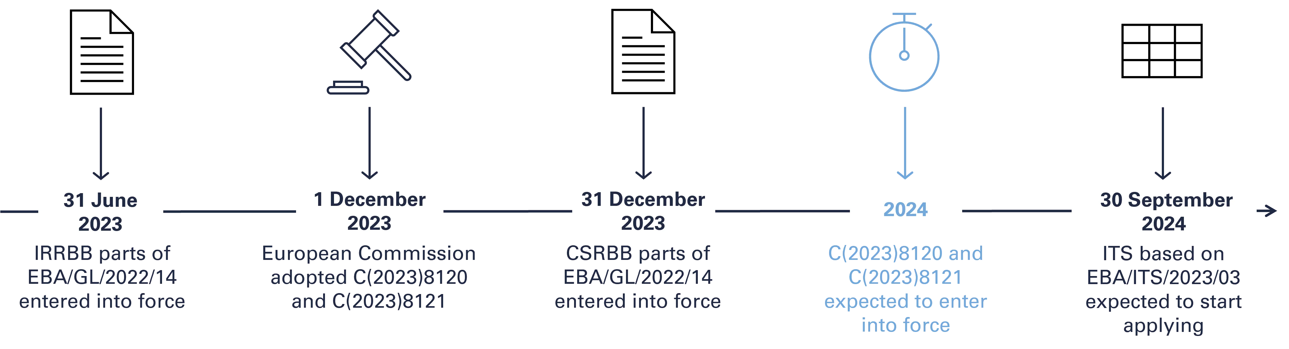The proposals were originally published on 20 October 2022 in a policy package together with the guidelines on IRRBB and credit spread risk arising from non-trading book activities (CSRBB), EBA/GL/2022/14, which you can read more about in our Article. The regulatory technical standards will enter into force 20 days after their publication in the Official Journal of the European Union (OJ). Against the background of the regulatory technical standards, the related reporting templates for the IRRBB were also developed in the draft Implementing Technical Standard (ITS), EBA/ITS/2023/03 (Published version: Commission Implementing Regulation (EU) 2024/855). This will lead to an increased reporting requirement when they become applicable by the reference date of 30 September 2024.